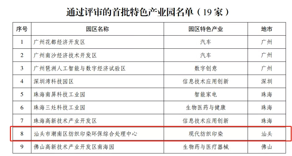 這是其繼獲評“全國環(huán)境污染第三方治理試點(diǎn)園區(qū)”、“中國紡織印染循環(huán)經(jīng)濟(jì)產(chǎn)業(yè)園示范基地”和“廣東省循環(huán)化改造試點(diǎn)園區(qū)”之后,又一重量級榮譽(yù)稱號。