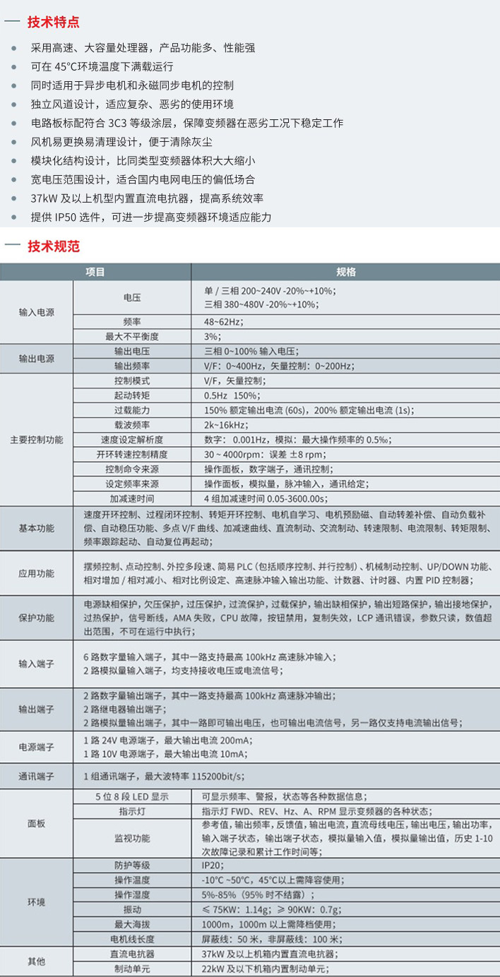 37kW及以上內置直流電抗器,提高系統(tǒng)效率