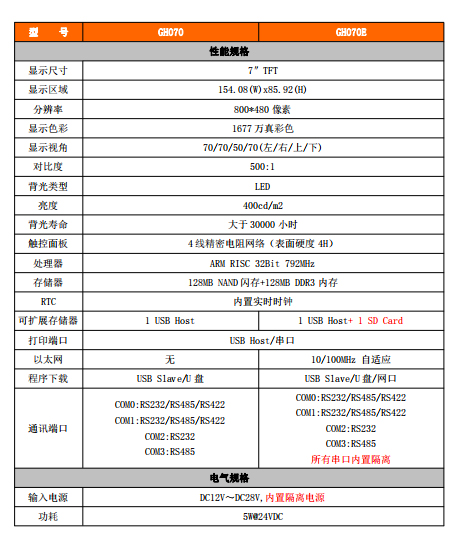 步科人機界面-GH070系列