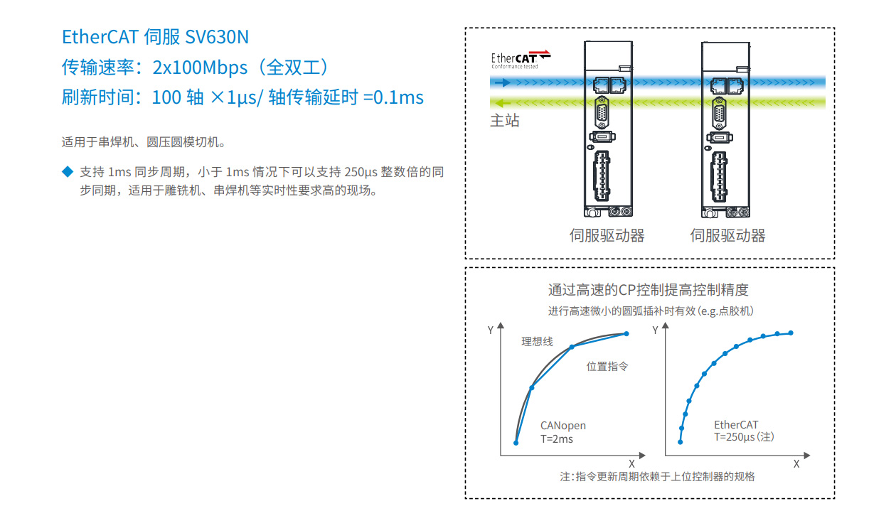 SV630 系列伺服是匯川技術(shù)研制的高性能中小功率的交流伺服產(chǎn)品。該系列產(chǎn)品功率范圍為0.05kW ~ 7.5 kW,采用以太網(wǎng)通訊接口,支持EtherCAT 、Modbus、CANopen 和CANLink 等通信協(xié)議,采用對(duì)應(yīng)的通信接口,配合上位機(jī)可實(shí)現(xiàn)多臺(tái)伺服驅(qū)動(dòng)器聯(lián)網(wǎng)運(yùn)行。